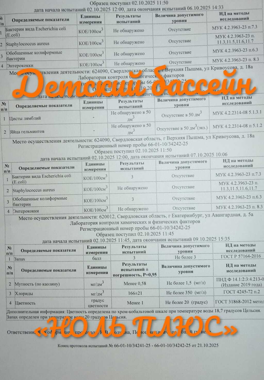Мы сдаем воду из нашего детского бассейна в Центр гигиены и эпидемиологии г.Екатеринбурга для подтверждения качества и безопасности воды!💦